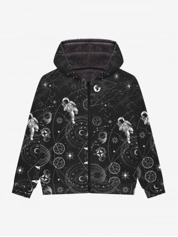 Outerwear > Gothic Sun Moon Star Galaxy Astronaut Planet Print Pocket Zipper Fleece Lining Hoodie For Men