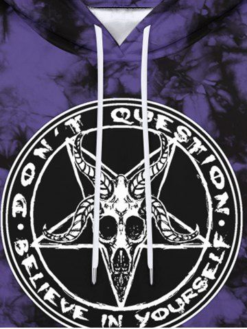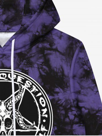Gothic Tie Dye Sheep Head Skull Pentagram Print Pockets Drawstring Fleece Lining Hoodie For Men - Purple - 4xl