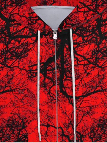 Gothic Tree Branch Print Zipper Pockets Drawstring Hoodie For Men - Red - 3xl