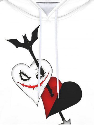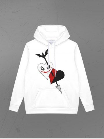 Gothic Valentine's Day Arrow Heart Smile Print Pockets Fleece Lining Drawstring Hoodie For Men - White - 5xl