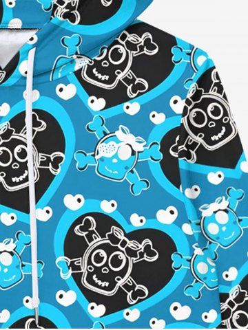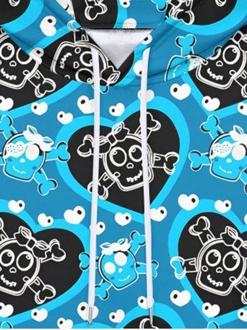 Gothic Valentine's Day Bowknot Skulls Heart Print Drawstring Fleece Lining Hoodie For Men - Blue - 5xl