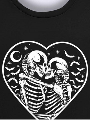 Gothic Valentine's Day Heart Skeleton Skulls Moon Birds Print Crew Neck Sweatshirt For Men - Black - Xl