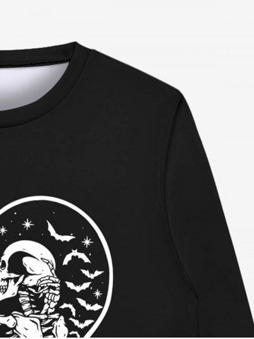 Gothic Valentine's Day Heart Skeleton Skulls Moon Birds Print Crew Neck Sweatshirt For Men - Black - 3xl