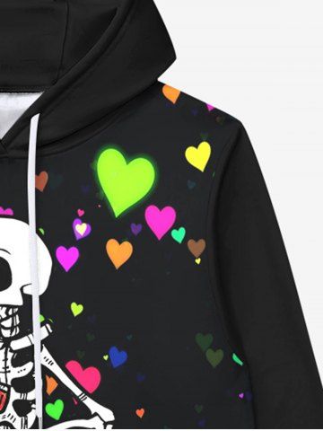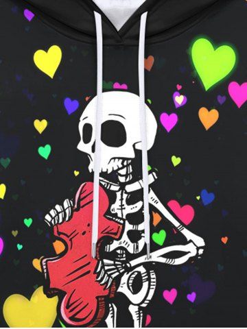 Gothic Valentine's Day Heart Skull Skeleton Print Pockets Drawstring Fleece Lining Hoodie For Men - Black - 5xl