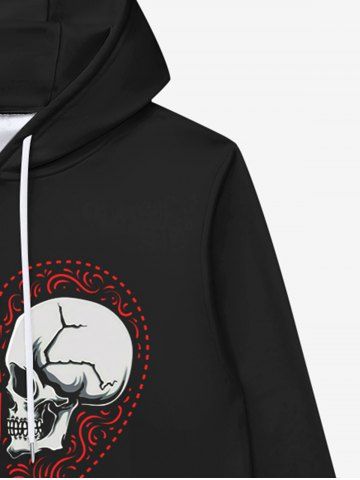 Gothic Valentine's Day Heart Skulls Print Pockets Fleece Lining Drawstring Hoodie For Men - Black - M