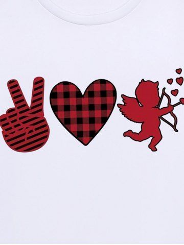 Gothic Plaid Heart Victory Gesture Cupid Print Fleece Lining Sweatshirt For Men - White - 5xl