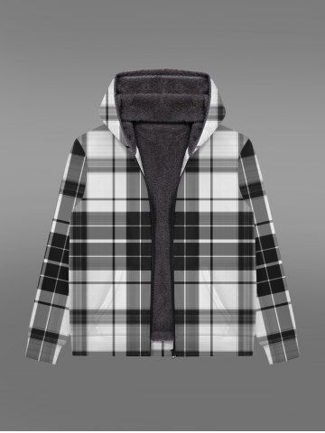 Outerwear > Gothic White Black Plaid Print Zipper Fleece Hoodie For Men