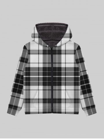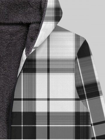 Outerwear > Gothic White Black Plaid Print Zipper Fleece Hoodie For Men