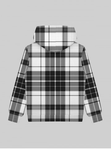 Gothic White Black Plaid Print Zipper Fleece Hoodie For Men - White - 3xl