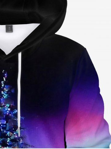 Outerwear > Men Christmas Tree Printed Ombre Flocking Lined Front Pocket Pullover Hoodie