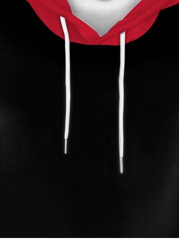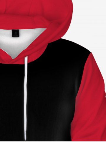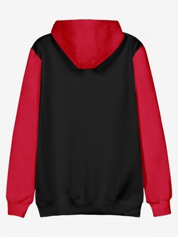 Men Two Tone Front Pocket Long Sleeves Pullover Hoodie - Red - M
