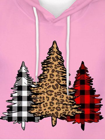 Mens Christmas Tree Print Front Pocket Hoodie - Light Pink - L
