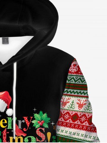 Mens Snowflake Letter Print Graphic Christmas Hoodie - Black - L