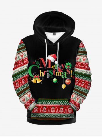 Mens Snowflake Letter Print Graphic Christmas Hoodie - Black - 3xl