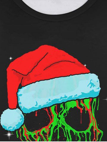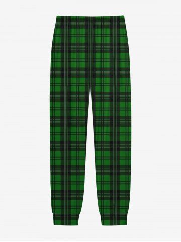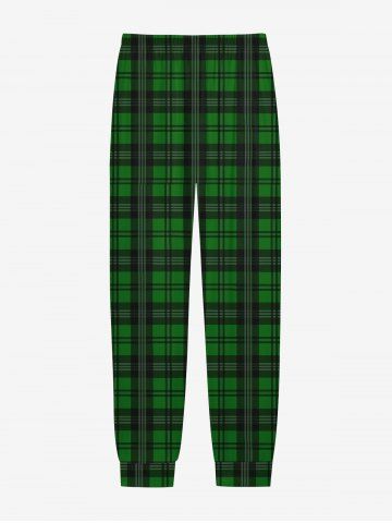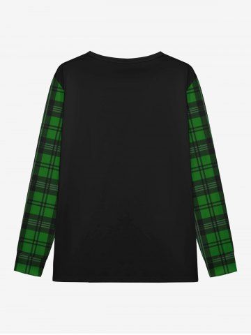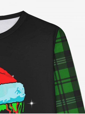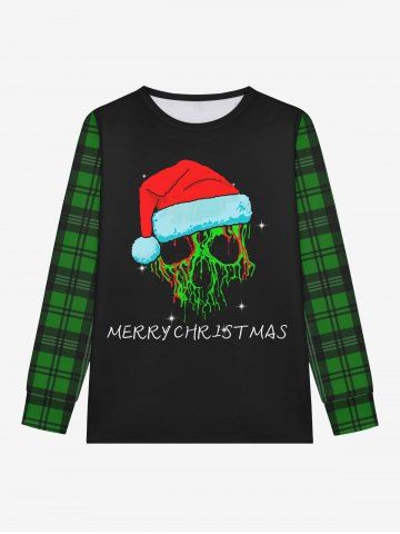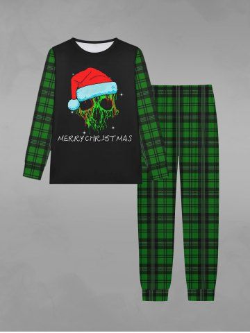 Gothic Christmas Hat Skull Plaid Print Long Sleeve T-shirt and Jogger Pants Pajama Set For Men - Green - M