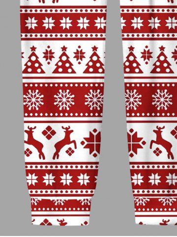 Plus Size Men's Christmas Elk Snowflake Print Jogger Pants - Red - L