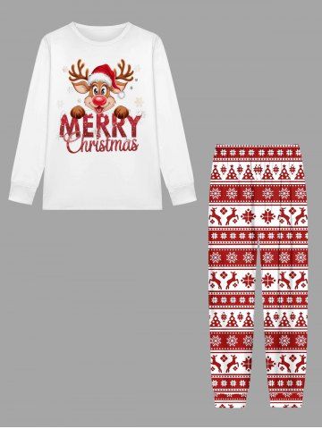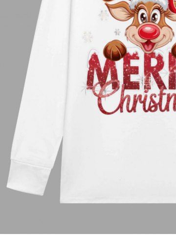 Plus Size Men's Christmas Elk Snowflake Print Long Sleeve T-shirt - White - S
