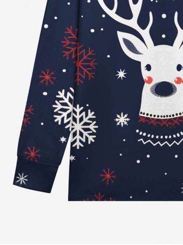 Plus Size Men's Christmas Elk Snowflake Printed Pajama Long Sleeves T-shirt - Navy Blue - Xl