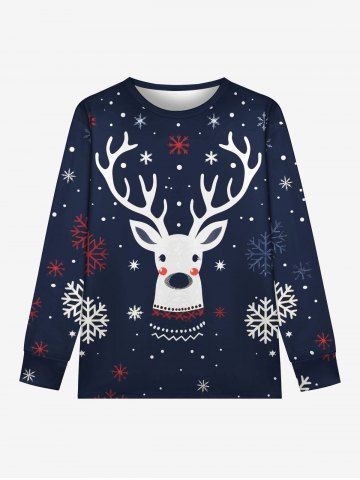Plus Size Men's Christmas Elk Snowflake Printed Pajama Long Sleeves T-shirt - Navy Blue - 5xl