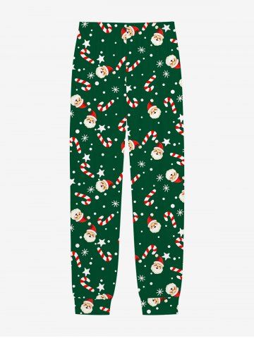 Plus Size Men's Christmas Santa Claus Snowflake Candy Print Pajama Jogger Pants - Green - Xl