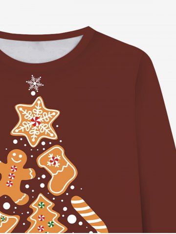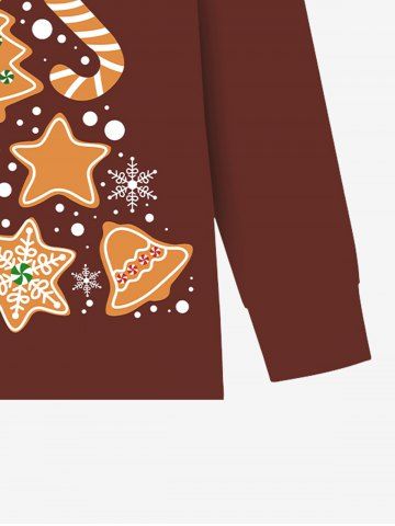 Plus Size Men's Christmas Tree Bell Gingerbread Candy Snowflake Print Long Sleeves T-shirt - Brick Red - 3xl