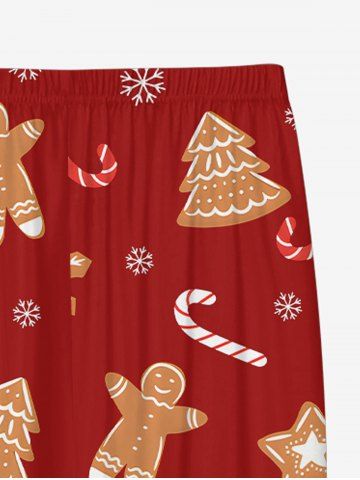 Plus Size Men's Christmas Tree Gingerbread Candy Star Print Jogger Pants - Red - 2xl