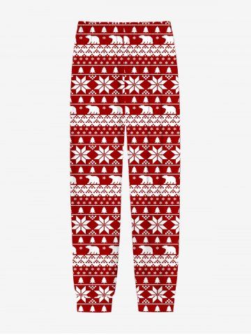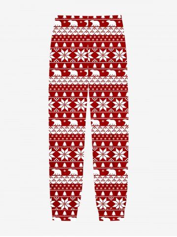 Plus Size Men's Christmas Tree Snowflake Polar Bear Print Jogger Pants - Red - M