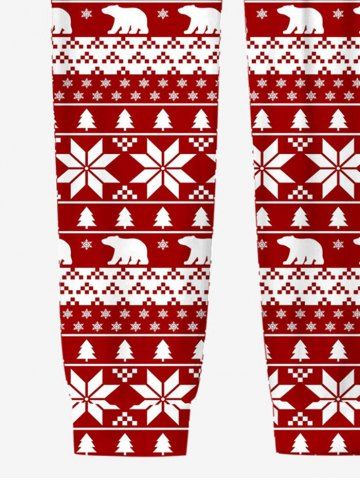 Plus Size Men's Christmas Tree Snowflake Polar Bear Print Jogger Pants - Red - 2xl