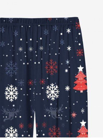 Plus Size Men's Christmas Tree Snowflake Print Pajama Jogger Pants - Navy Blue - L