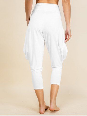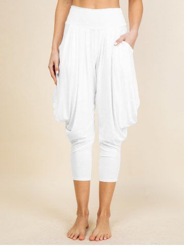 Elastic High Waist Draped Lantern Pants - White - M