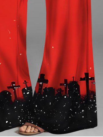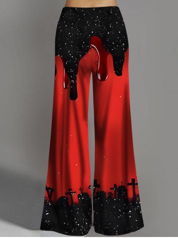 Halloween Galaxy Milk Pouring Print Wide Leg Pants - Red - M