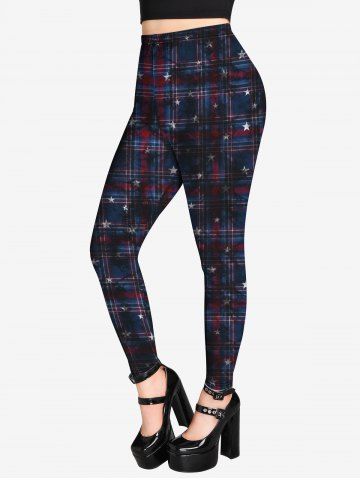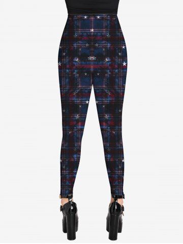 Gothic Patriotic American Flag Plaid Print Leggings - Black - M | Us 10