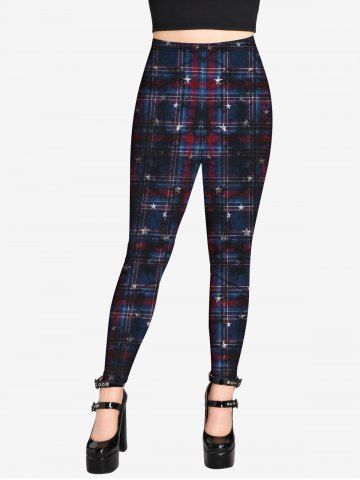 Gothic Patriotic American Flag Plaid Print Leggings - Black - L | Us 12