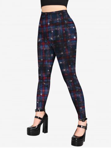 Gothic Patriotic American Flag Plaid Print Leggings - Black - 5x | Us 30-32