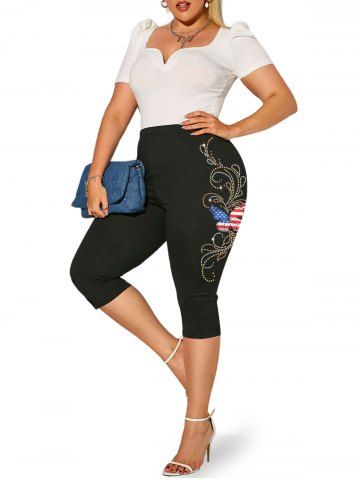 Patriotic American Flag Print Graphic Top and Capri Leggings Plus Size Summer Outfit