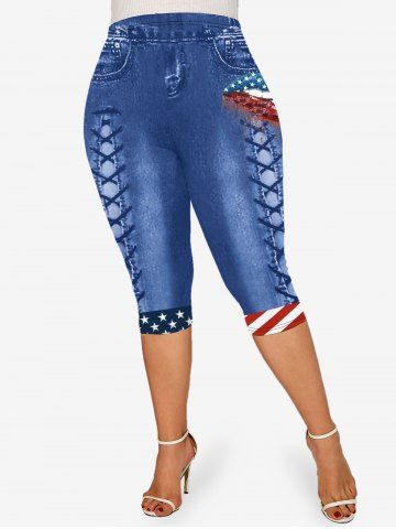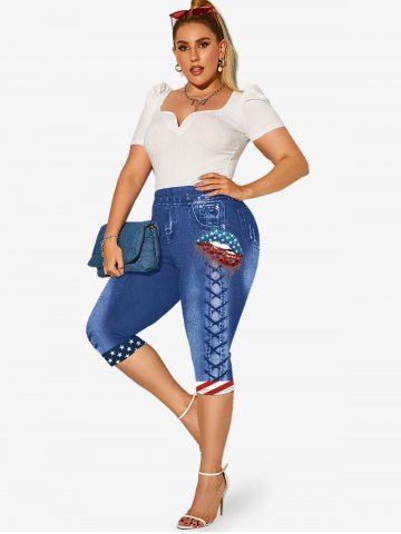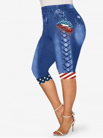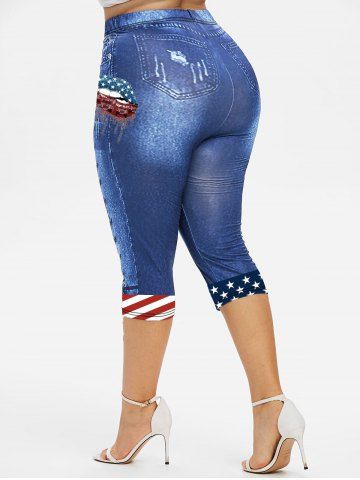 k*****i5Plus Size American Flag Lip 3D Print Capri JeggingsColor: BLUE Size: 1X | US 14-16I bought two pair of these they run a little small so my second pair had to get a larger size very cute outfit though