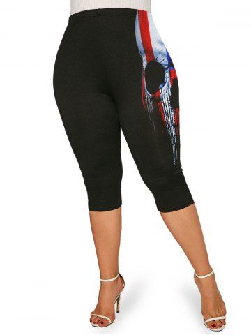 Plus Size American Flag Skull Print Patriotic Capri Leggings - Black - L | Us 12