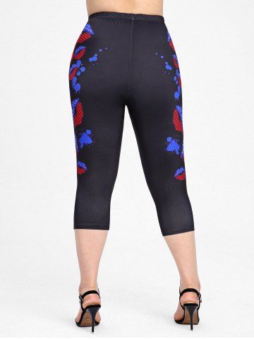 Plus Size & Curve American Flag Patriotic Lips Capri Leggings - Black - 1x | Us 14-16