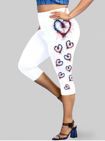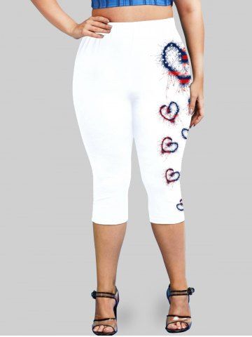 Plus Size & Curve Patriotic American Print Heart Print Capri Leggings - White - L | Us 12
