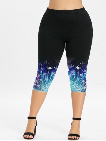 A*****a4Plus Size Fireworks American Flag Printed Patriotic Capri LeggingsColor: BLUE Size: 3X | US 22-24Beautiful fabric and very soft and comfortable. Fits perfectly. I love it.