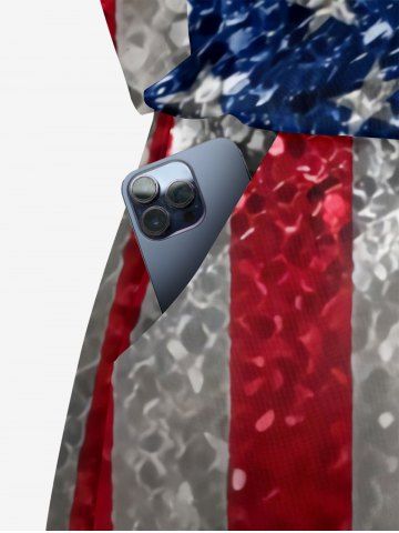 Plus Size Glitter Sequins Patriotic American Flag Print Drawstring Pocket Romper - Red - Xxs