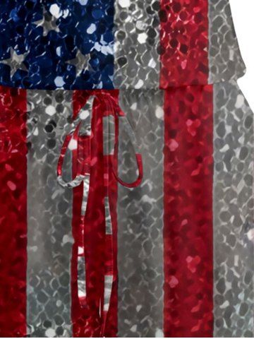 Patriotic Leginggs & Pants > Plus Size Glitter Sequins Patriotic American Flag Print Drawstring Pocket Romper
