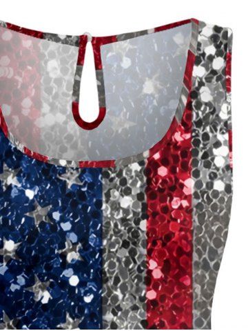 Patriotic Leginggs & Pants > Plus Size Glitter Sequins Patriotic American Flag Print Drawstring Pocket Romper