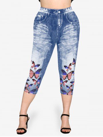A*****a5Plus Size Patriotic 3D Jeans Butterfly American Flag Capri JeggingsColor: BLUE Size: 3X | US 22-24Beautiful fabric and very soft and comfortable. Fits perfectly. I love it.
