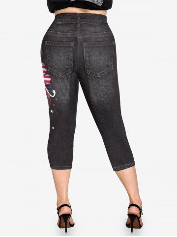 Plus Size Patriotic 3D Jeans Butterfly American Flag Printed Capri Jeggings - Black - S | Us 8