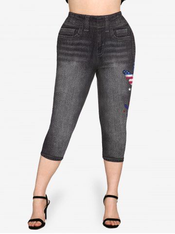 A*****a5Plus Size Patriotic 3D Jeans Butterfly American Flag Printed Capri JeggingsColor: BLACK Size: 3X | US 22-24Beautiful fabric and very soft and comfortable. Fits perfectly. I love it.