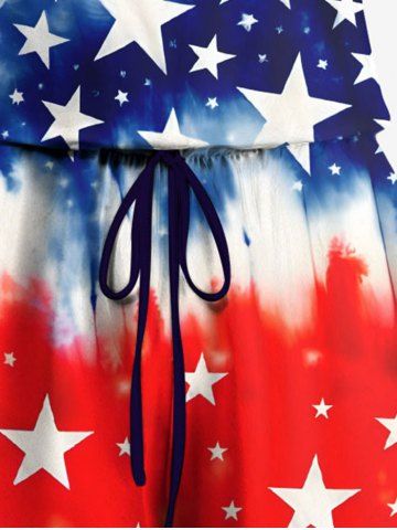 Plus Size Patriotic American Flag Tie Dye Print Cinched Romper - Blue - 3x