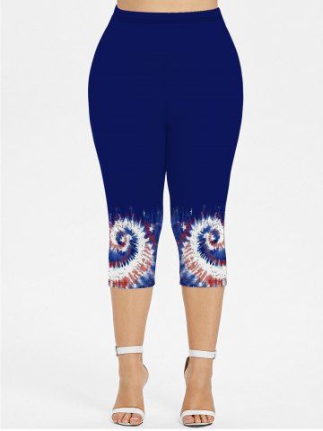 Plus Size Tie Dye American Flag Print Capri Leggings - Blue - S