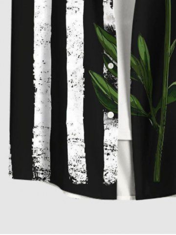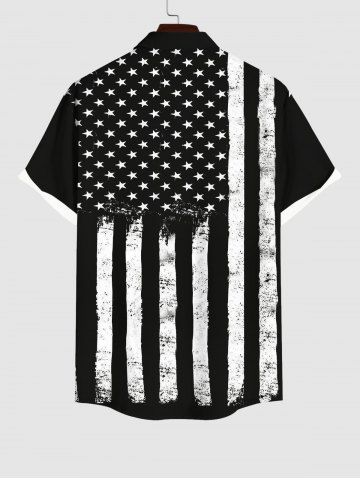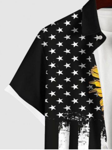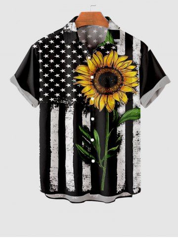 Men's Patriotic American Flag Sunflower Print Buttons Pocket Shirt - Black - L