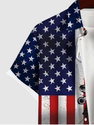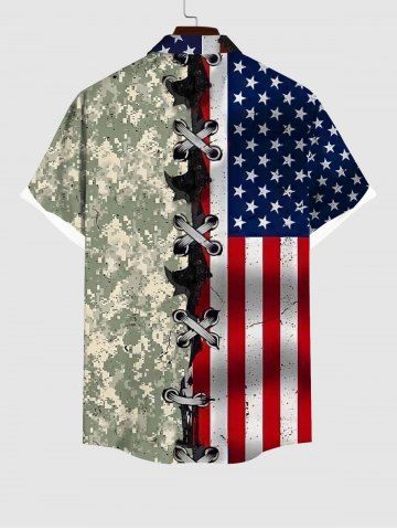 Patriotic Men > Plus Size American Flag Camouflage 3D Lace Up Print Button Pocket Shirt For Men